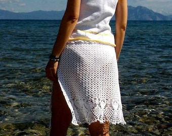 White Beach Skirt Crochet Cover Up Swimwear Coverup Pareo Etsy