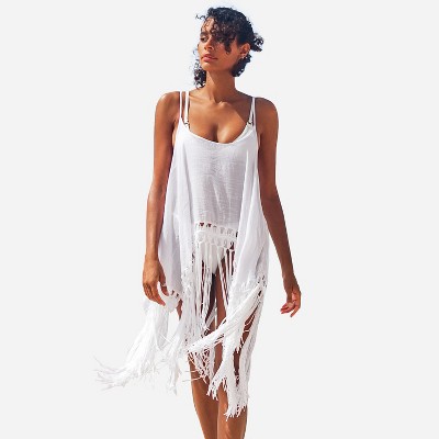 Swim Cover Ups Tops For Women Summer Lace Crochet Tassel Bikini Swimwear Sleeveless Strap Beach Wear Dress Bathing Suit Walmart Com